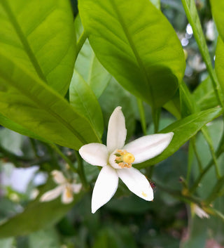 the night-blooming orange blossom processed in the traditional oil-infusing method by gently soaking the full blossoms in oil to release their intoxicating fragrance, blended with a touch of steam-distilled lavender